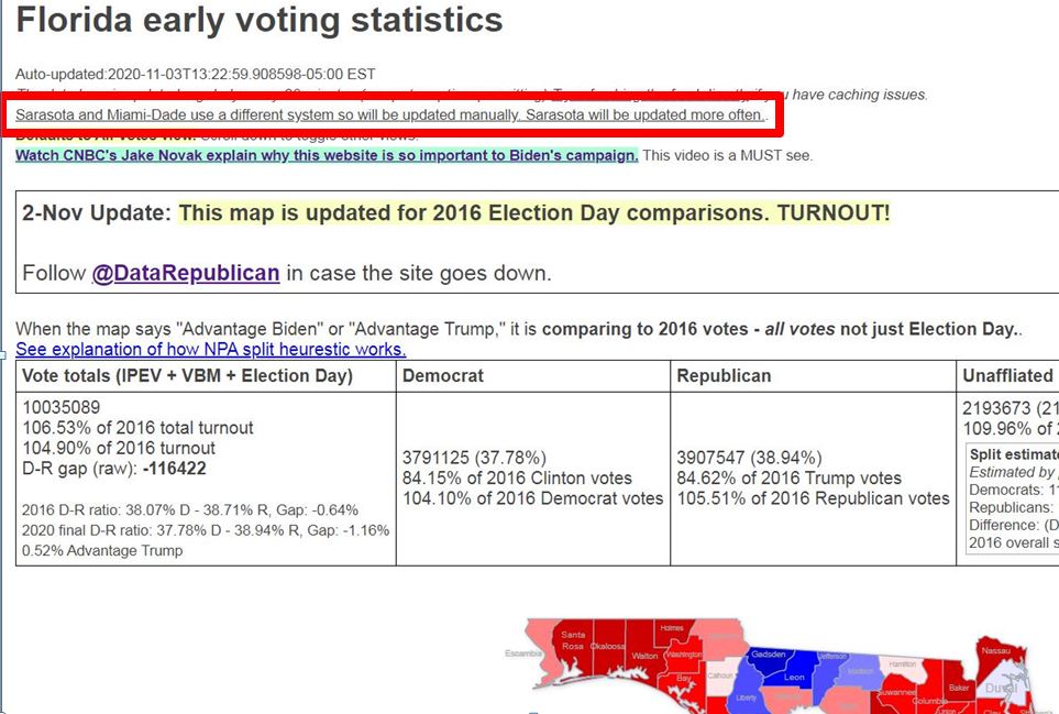 It's Miami and Sarasota that aren't using the standard reporting. Both Pinellas and Hillsborough (The two counties that contain the majority of Tampa and it's suburbs, like St. Pete) are reporting the same as the rest of the state.