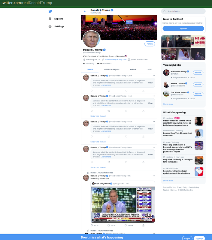 When did you take rhe screen shot? I looked at the President's Twitter about 8 minutes ago and there weren't any warning boxes at all. I thought maybe somebody talked sense into Jack.