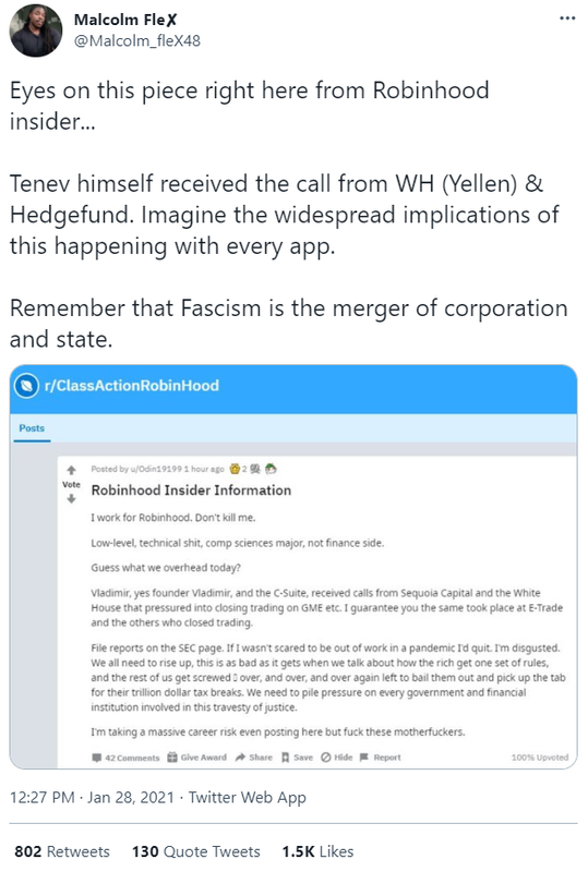 945 EXPOSED: White House (Biden) FORCED Robinhood to stop GameStop trading (i.postimg.cc) 🚔 PARTY OF CRIME 🚔 posted 79 days ago by Transfer 79 days ago by Transfer +946 / -1 21 comments share 21 comments share save hide report block hide child comments Comments (21) sorted by: top new old worst You're viewing a single comment thread. View all comments, or full comment thread. ▲ 11 ▼ – NeverNotTrump 11 points 79 days ago +14 / -3 Note to the Internet: A single anonymous source doesn't EXPOSE anything (except for the Loon-Wood-wanna-be who's shilling it). permalink save report block reply ▲ 1 ▼ – deleted 1 point 79 days ago +1 / -0