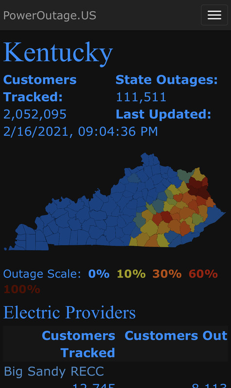 So I'm on mobile and that link won't show the map, even on 'desktop mode', but it looks like the Ashland area already had a bunch of power outages from ice storms on the 11th but then this recent one hit 'em again with more ice, causing outages in Hazard and Pikeville as well.