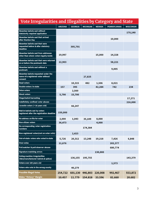 As far as evidence, you have 270 pages worth in Sydney Powell's documentation and three volumes of the Navarro Report not to mention a humongous list of evidence at hereistheevidence.com