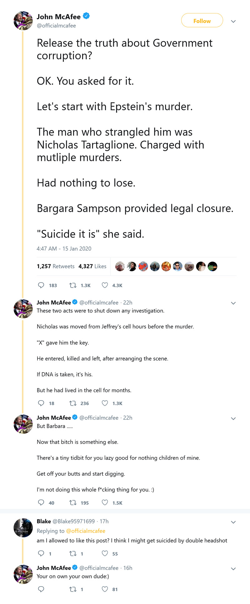 LARP? Are you saying someone is pretending to be McAfee or do you think LARP means liar?
