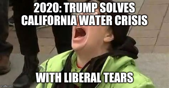142 Trump solves California water crisis (i.imgflip.com) posted 1 year ago by paulddraper 1 year ago by paulddraper +142 / -0 2 comments share 2 comments share save hide report block hide child comments Comments (2) sorted by: top new old worst You're viewing a single comment thread. View all comments, or full comment thread. ▲ 2 ▼ – TheWhitestOfFangs 2 points 1 year ago +2 / -0 Desalination of the tears is needed to separate all the salt. permalink save report block reply