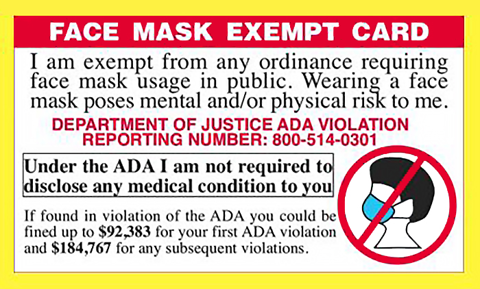 Thinking about getting some business card stock and printing these out, the OP that made that said he got some printed up at a vistaprint type company https://i.postimg.cc/fy9T0rDZ/face-mask-exempt-card.jpg