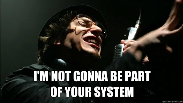 It's funny, because even when I was a teenager in a punk rock band, the system that I rebelled against was always big government telling me what's good for me and how I need to be taken care of. Fuck THAT system.