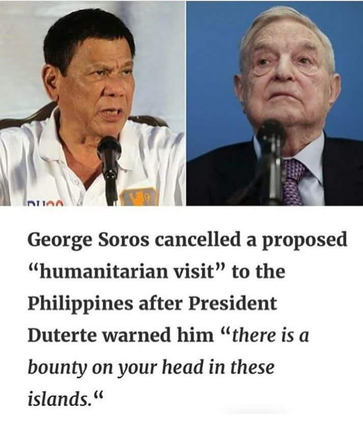 Duterte is a POS. Yeah we like tough talk on Soros but this guy is a scab. He sides with China as soon as the wind changes direction.