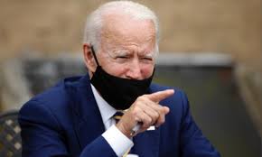Cutting a hole for Biden's mask is not necessary. He just needs to lower it like this