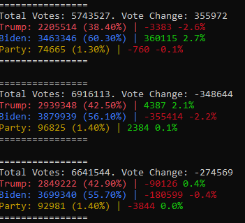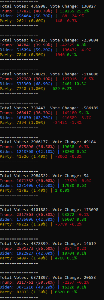 Yeah, definitely. I'd just hope people stop using the rounding errors as evidence of fraud. There's other inconsistencies that can't be easily explained without the generic "it was human error during 'x'." I'm still curious about that exact vote switch in New Jersey that was nearly 80k.