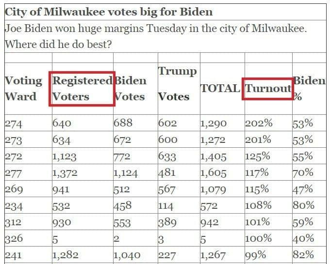 We already know via statistical analysis that there was widespread voter fraud in places like Wisconsin*. Unfortunately math probably won't be convincing to the courts, and the only hope of it doing anything would be to convince the state assemblies to submit their electoral votes for Trump despite what the vote says, which would probably cause a civil war and is only really a possibility in GA.